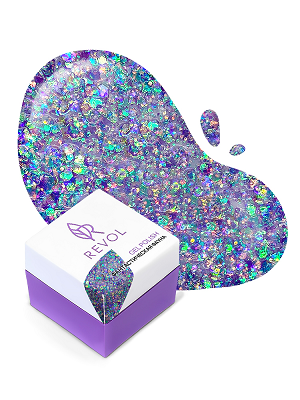 - Гель-лак на прозрачной основе и блестящие шестигранники разных размеров.