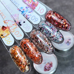 Правильная и неправильная форма элементов, разнообразная геометрия блесток каждый раз создают на поверхности ногтя уникальное покрытие с отличными декоративными свойствами.