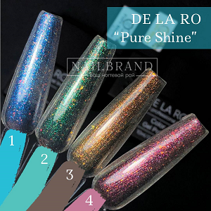 Pure Shine DE LA RO дают неповторимые эффекты, при разном освещении и на разных подложках они меняют цвет, делая каждый маникюр неповторимым.
