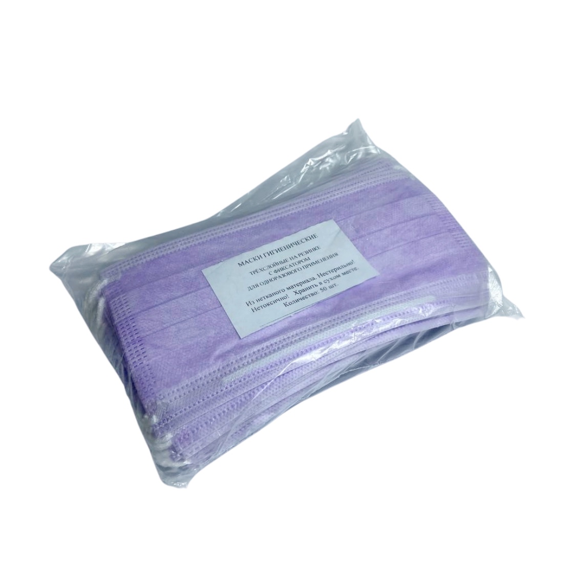 Маски трёхслойные одноразовые фиолетовые, 50 шт