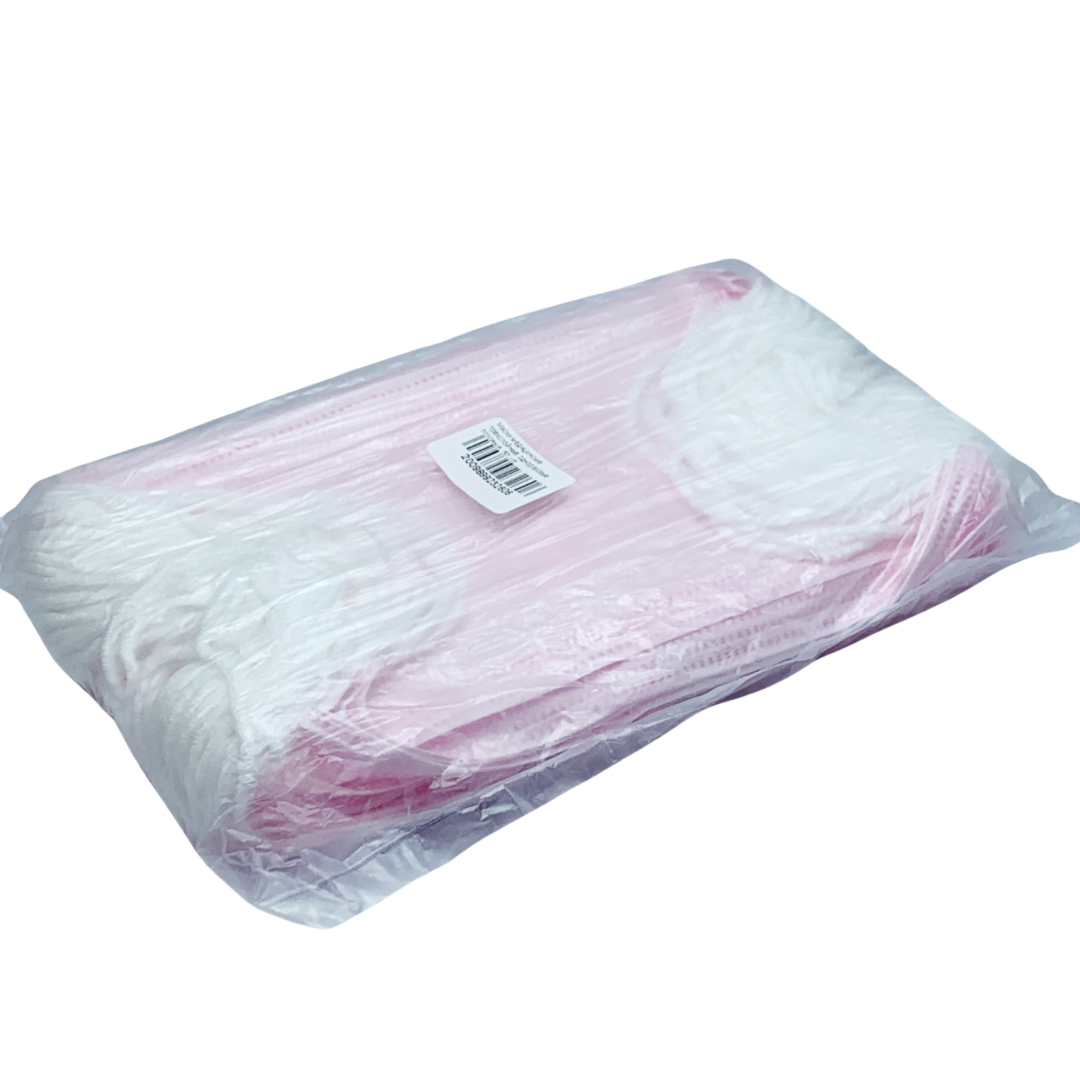 Маски трёхслойные одноразовые розовые, 50 шт