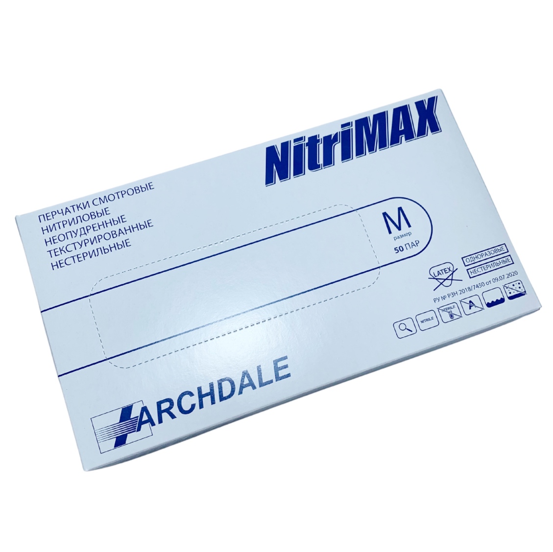 Перчатки нитриловые NitriMax, размер M, цвет белый, в упаковке 100 шт. (50 пар).