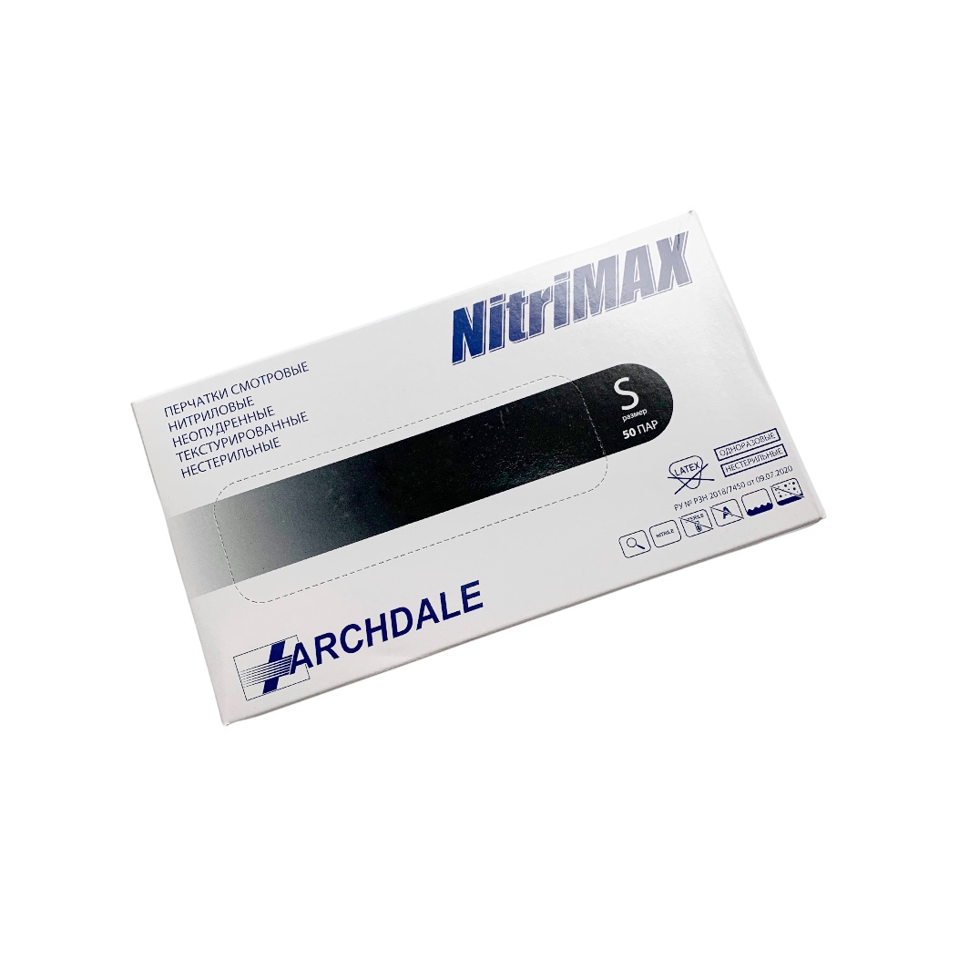 Перчатки нитриловые NitriMax, размер S, цвет чёрный, в упаковке 100 шт. (50 пар).