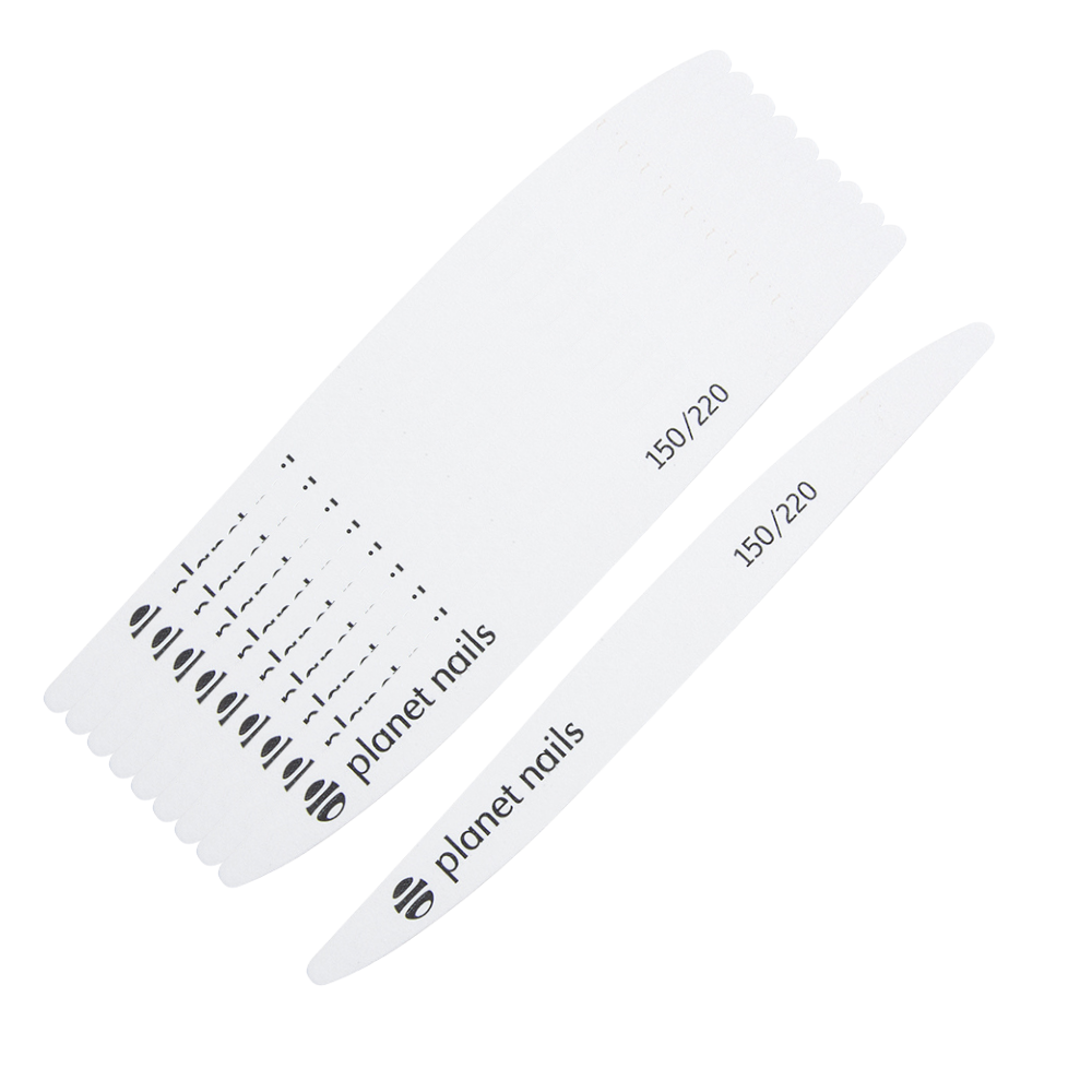 Тонкая пилочка на деревянной основе в форме "волны", зернистостью 150/220 - отличный инструмент для работы с натуральными ноготками. Также подходит для педикюра.