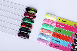 • Долгоиграющие лаки Slow Mo не пересыхают в процессе работы. Ты без спешки нанесешь рисунок на ноготь, не волнуясь о том, что он высохнет на пластине или штампе.